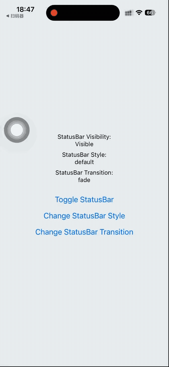 这个组件我还是第一次遇到,之前写小程序的时候,是不能够控制手机顶部栏的,所以这一点我是很难理解的,官提供了一个案例,可以在手机上体验一下https://reactnative.dev/docs/statusbar。