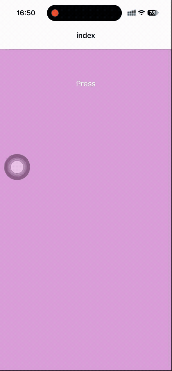 xxxxxxxxxx91// app/index.tsx23import { View, Button } from 'react-native'45export default function Index() {6 return <View style={{ flex: 1, backgroundColor: "plum", padding: 60 }}>7 <Button title='Press' onPress={() => console.log('Button Pressed')} color="white"/>8 </View>9}